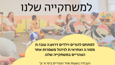 דרוש.ה אחראי.ת למשחקייה לגיל הרך בבנימינה – משרה חלקית